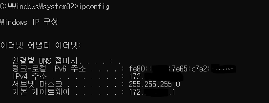 게이트웨이를 보면 172로 시작해서 1로 끝난다. IP 클래스중 B클래스의 가상 IP(사설 IP) 대역을 사용하므로 172로 시작한다.