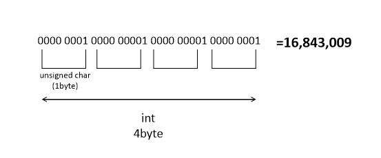 int 각 (4byte)마다 16843009가 들어간 것을 볼 수 있다.