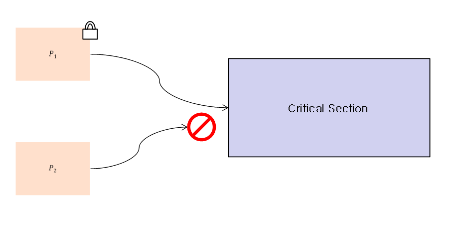 상호 배제, 한 프로세스가 자신의 임계 구역에서 실행 시 다른 프로세스는 그 자신의 임계 구역에서 실행할 수 없습니다.