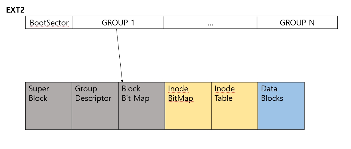EXT2는 EXT버전의 기본 구조를 따라간 채 업그레이드된 버전으로 나왔습니다. 최대 파일 크기도 버전 출시 당시 2TB로 하드디스크 읽기 속도 증가를 위한 그룹 할당 방식을 도입했습니다.