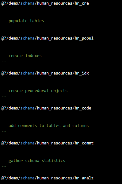 @?/demo/schema/human_resources/hr_main.sql를 입력합니다.