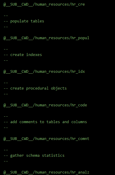 hr_main.sql에 있는 코드를 직접 수정하는 방법으로 해결합니다. 설치하기 위해 human_resources 폴더로 들어갑니다.