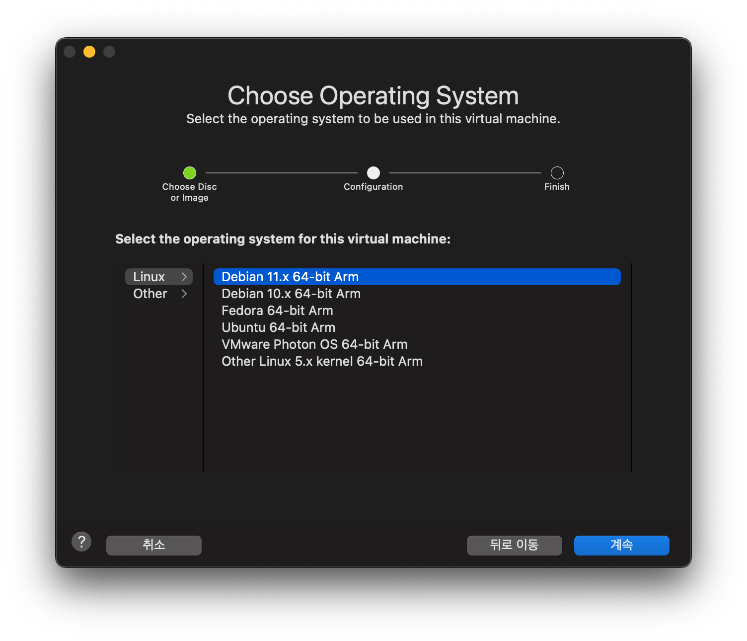2 os종류를 선택합니다. debian os를 선택하였으나 other으로 선택하셔도 가능합니다.