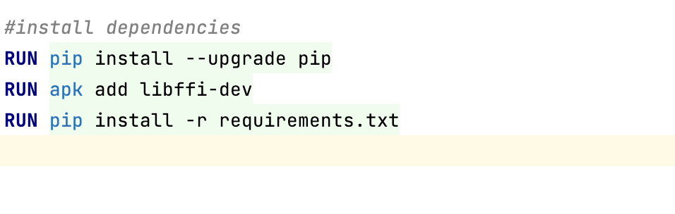 Dockerfile에서 requirements.txt를 설치하기전 libffi-dev를 설치할 수 있도록